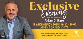 Ένα αποκλειστικό απόγευμα με τον Πρόεδρο της Forever International Aidan O' Hare, στην Ελλάδα! Σας περιμένουμε όλους εκεί!